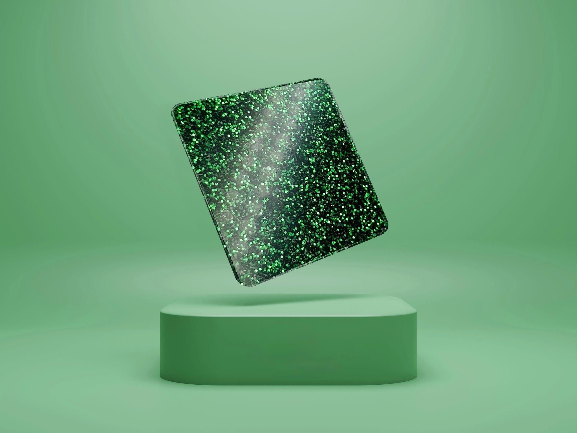 Tightly packed silver crushed glitter in green acrylic