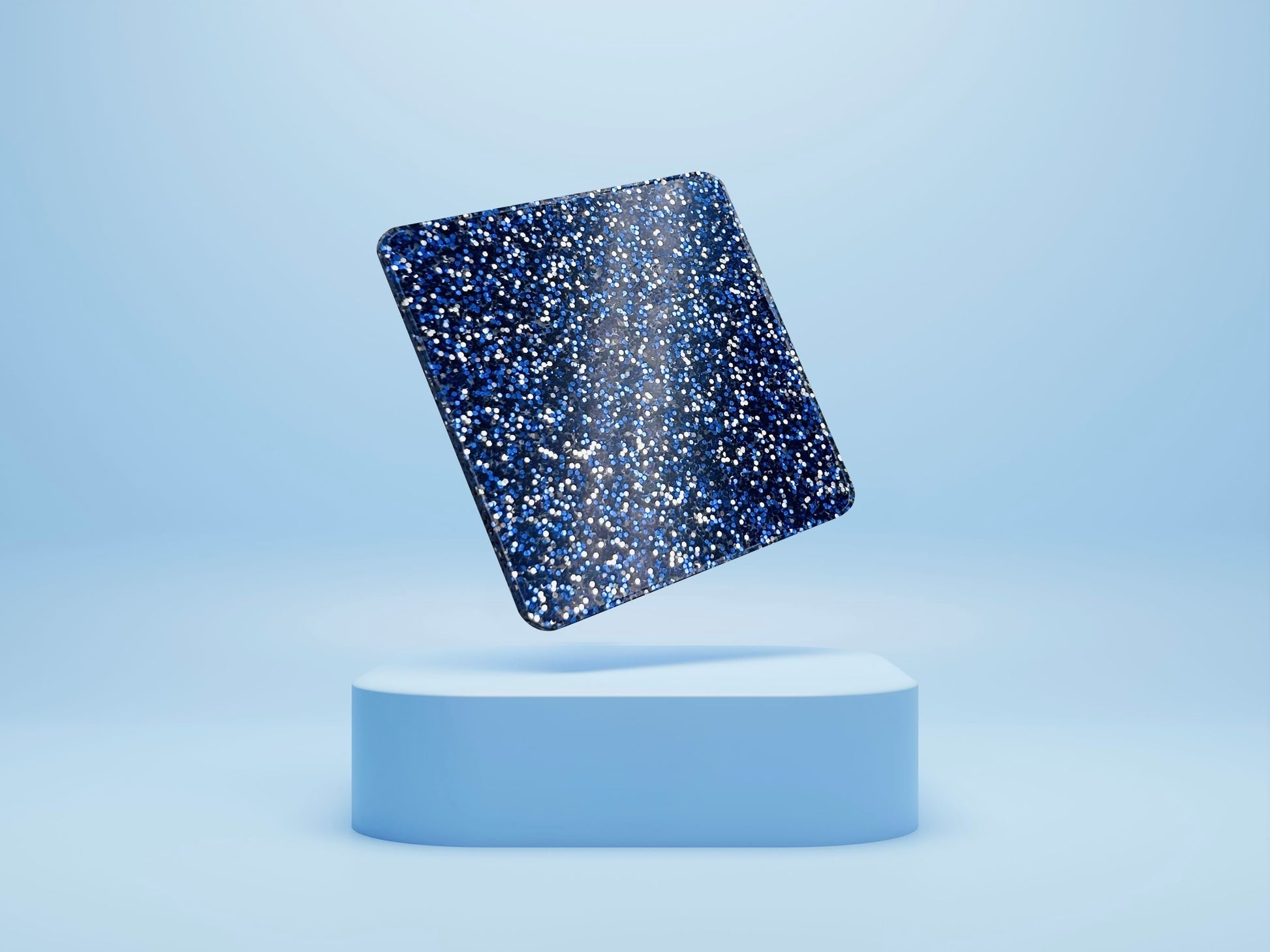 Tightly packed silver crushed glitter in royal blue acrylic sheets